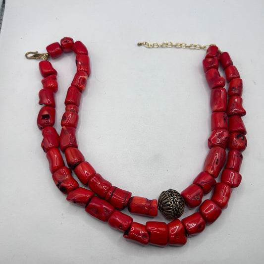 Studio Barse Chunky Red Coral and Bronze 2-Strand Necklace 16" & Earrings