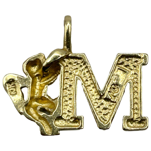 Vintage Michael Anthony 10k Gold Letter “M” & Cherub - Angel Pendant/Charm