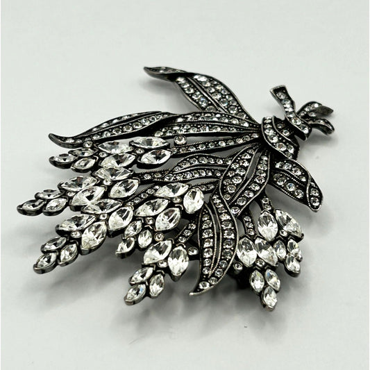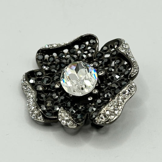 Kenneth Jay Lane KJL Gunmetal & Clear Crystal Flower Pin Brooch