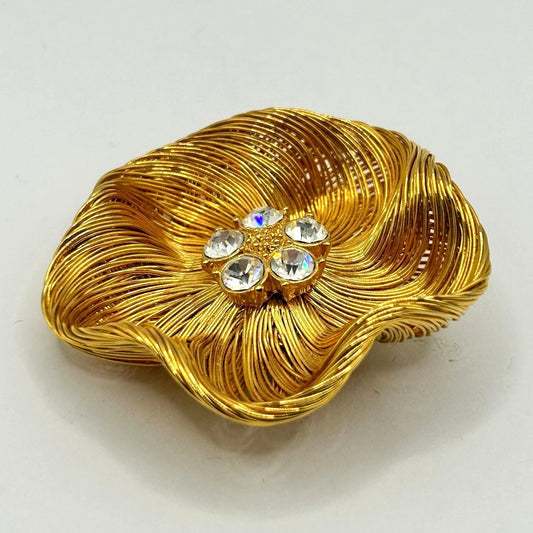 Vintage Monet Gold Plated Spun Wired Flower with Rhinestones Center Brooch