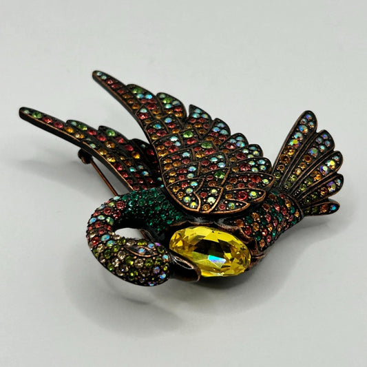 Vintage Joan Rivers Multi Crystal & Big Belly Stone Swan Pin
