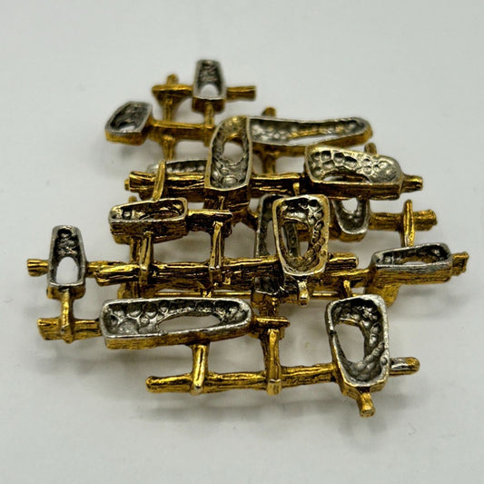Vintage Signed ART MCM Abstract Modernist Brutalist Atomic Brass Tone Pin Brooch