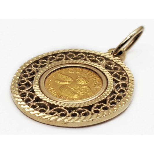Guardian Angel .999 Gold Coin in 14k Gold Filigree Bezel Pendant