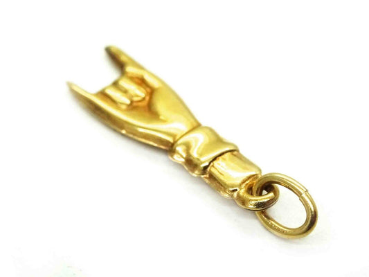 Hand Horns Evil Eye Ward Good Luck Charm Pendant 14k Gold 0.5 Grams
