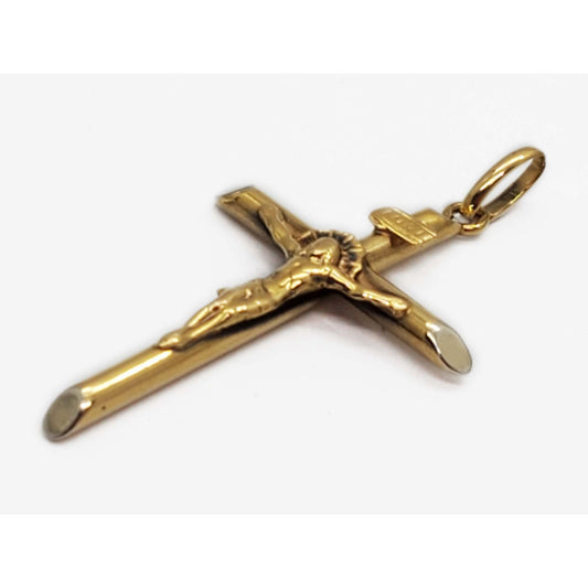 Italy Slant End Tube Design Crucifix Cross Pendant 18k Gold