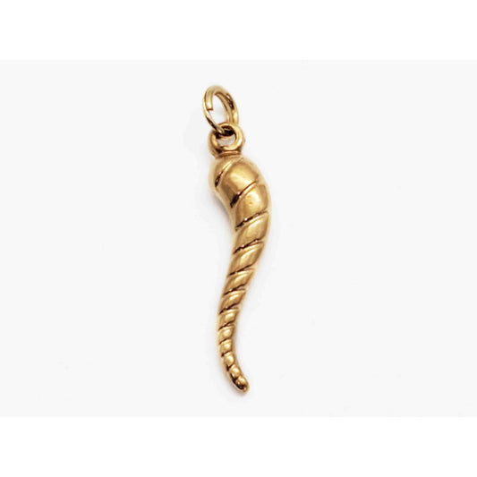 Italian Horn Cornicello Twist Design Good Luck Charm Pendant 18k Gold