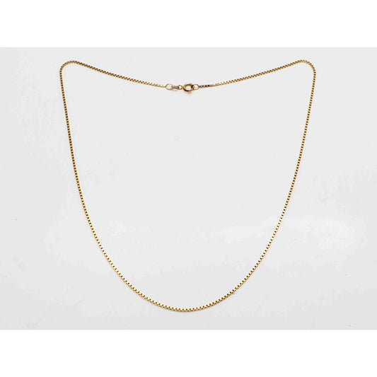 Italian 1.1mm Wide Box Link Chain Necklace 14k Gold 17.5" Long