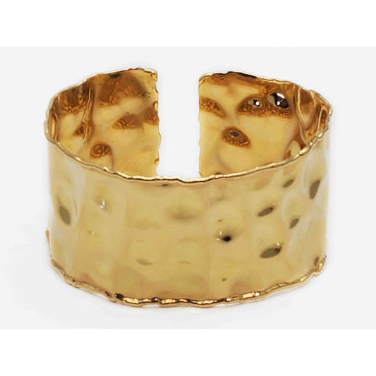 Italian Hammered Finish Wide Cuff Bracelet 18k Yellow Gold 26.8 Grams