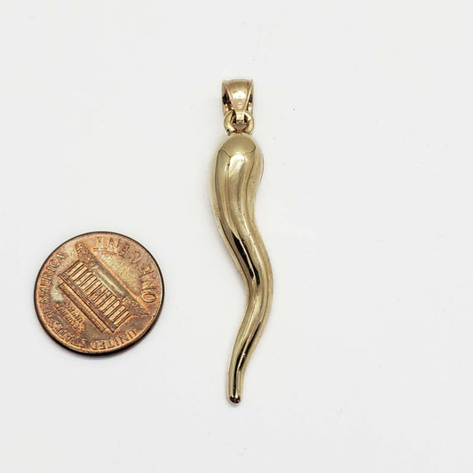 Italian Cornicello Horn Good Luck Charm Pendant 14k Gold 2" Tall 1.5 Grams