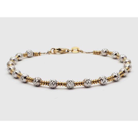 Italian Two-Tone Dia-Cut Ball Station Tennis Bracelet 14k Yellow & White Gold