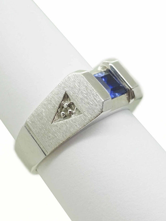Men's Square Natural Sapphire & Diamond Accent Ring 10k White Gold Size 7.75