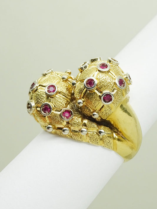 Mid Century Retro Ruby Double Knot Ring 18k Gold Size 7.25