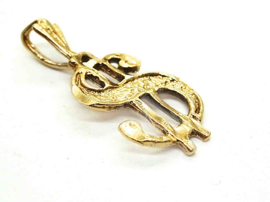 Money Dollar Sign Charm Pendant 14k Gold 0.6 Grams