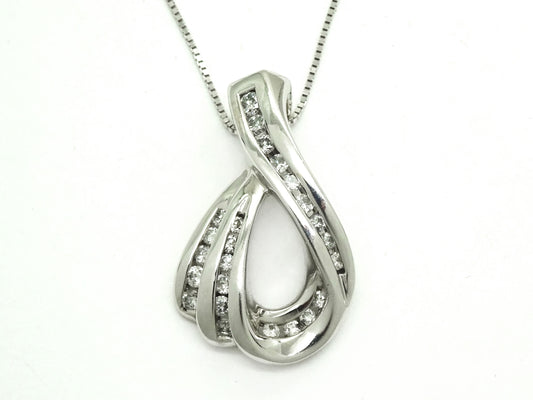 Natural Diamond Open Ribbon Swirl Design Pendant 14k WG Thin Box Chain 10k WG
