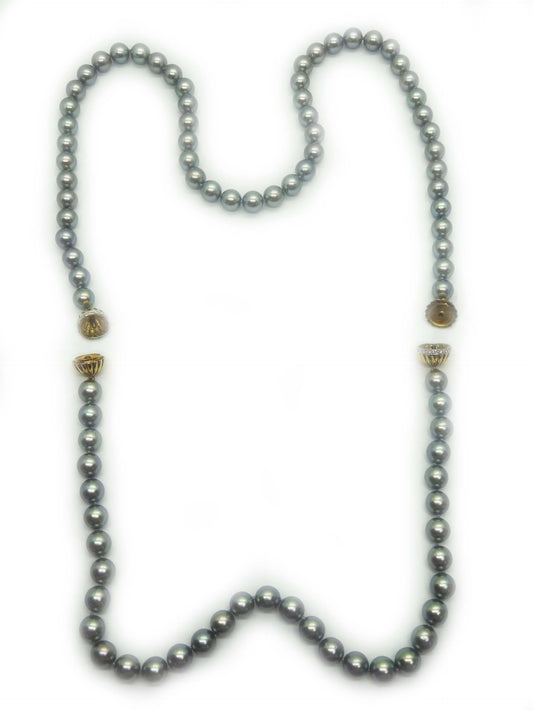 Natural Black Tahitian Pearl 9.2mm Dual Strand Necklace 18k Diamond Clasps 35.5"