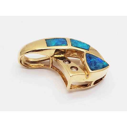 Natural Black Opal Inlay & Diamond Accent Slide Pendant 14k Gold