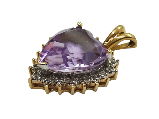 Natural Heart Amethyst & Diamond Open Heart Pendant 10k Gold