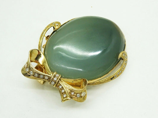 Natural Jadeite & Earth Mined Diamond Ribbon Brooch Pendant 14k Mason-May Report