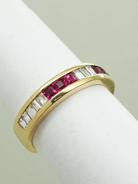 Natural 0.36ct tw Ruby & Diamond Band Ring 14k Gold Size 5 Gemworld