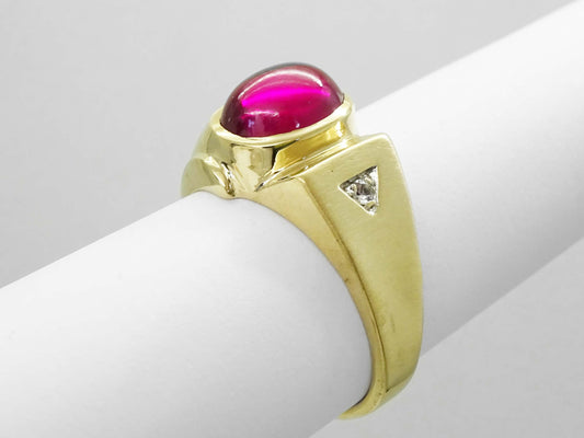 Oval Red Glass Cabochon & Natural Diamond Ring 10k Gold Size 10.5