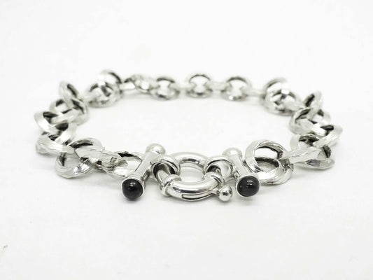 Onyx Cabochon 8mm Hollow Rolo Link Knife Edge Toggle Bracelet 14k White Gold