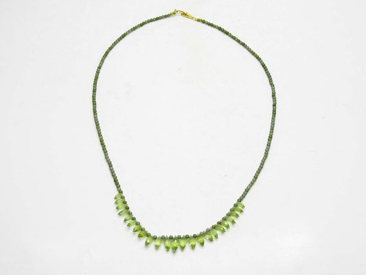 Peridot Faceted Briolette Drop & Bead Necklace with 14k Gold Clasp 17"