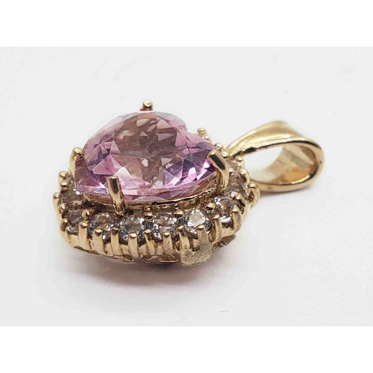 Pink Ice Heart & White Topaz Halo Charm Pendant 10k Gold