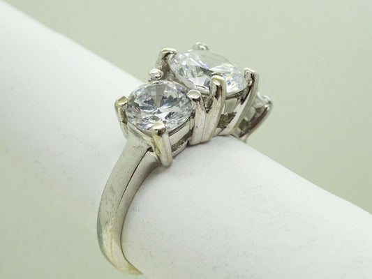 Sparkling White CZ 3-Stone Band Ring 14k White Gold Size 4.75