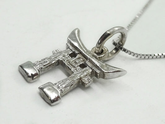 Shrine Gate Pendant Charm Chain Necklace 14k White Gold 18.5"
