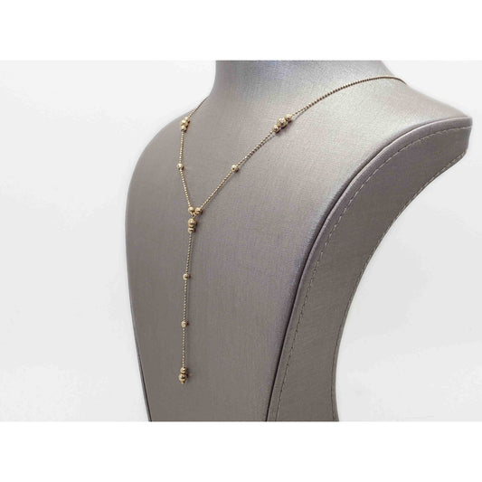 Y-Drop Style Bead Station Chain Necklace 14k Gold