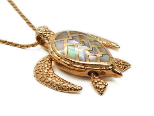 Wildlife Wonders 14k Rose Gold Abalone Mother of Pearl Turtle Pendant Necklace