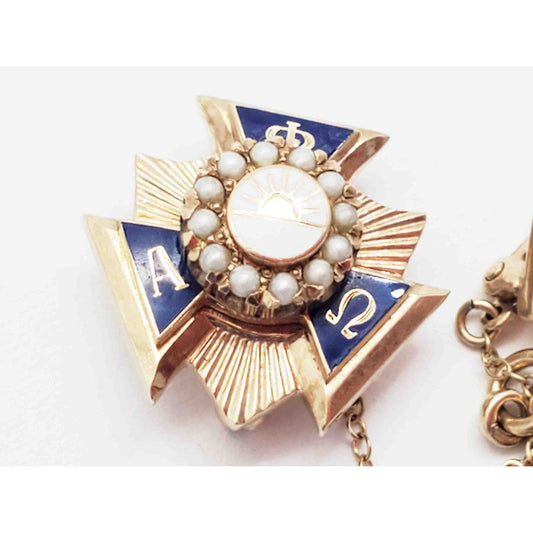 Vintage 1967 Alpha Phi Omega College Service Fraternity Seed Pearl Pin 10k Gold