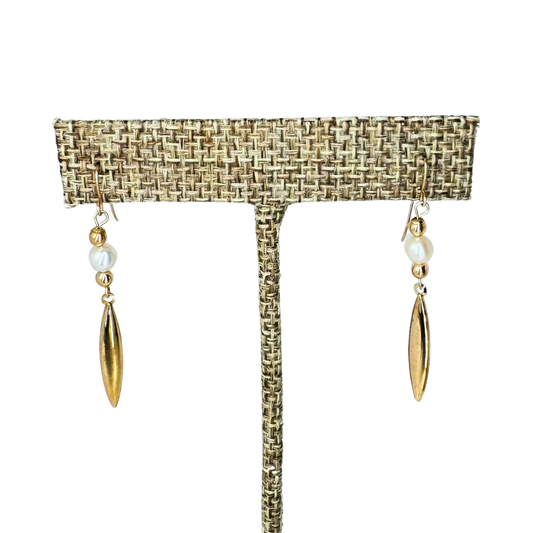 14K Gold Bud Pearl Dangle Ear Wire Earrings