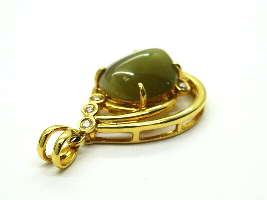 13+ ct tw Natural Cats Eye Chrysoberyl & Earth Mined Diamond Pendant 18k Gold