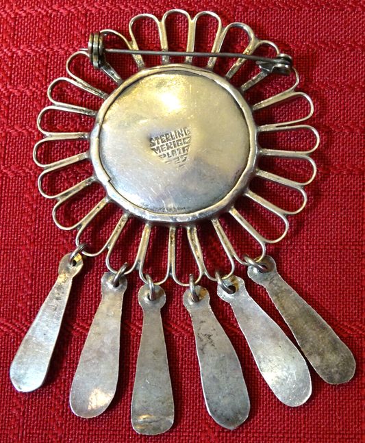 Vtg. Rare Old Pawn Taxco Sterling Silver Sun Brooch,Black Onyx Inlay 925, 20.1 g
