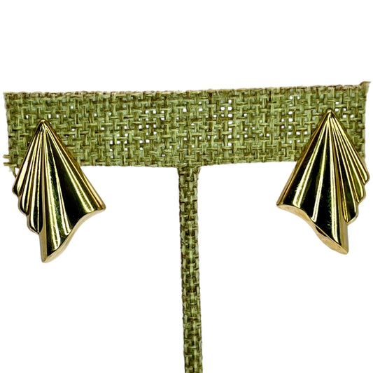 14K Yellow Gold Modernist Earrings Geometric Lightweight Stud Drop Statement