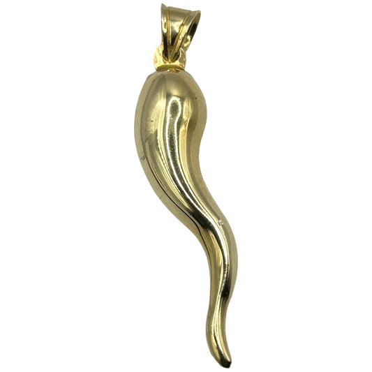 14k Yellow Gold Large Italian Cornicello Horn 38.5mm Long Charm Puffed Pendant