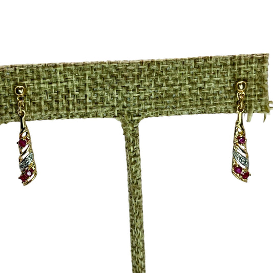 14K Yellow Gold Ruby Diamond Chip Dangle Drop Earrings Formal Statement Colorful