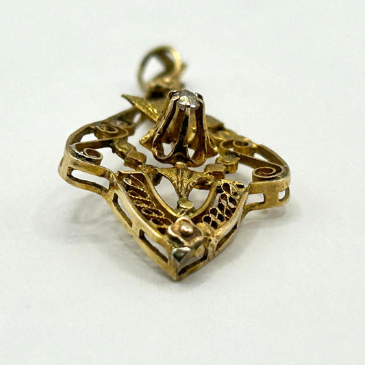 14k Yellow Gold Filigree Lavalier Pendant with .05ct Old Mine Cut Diamond