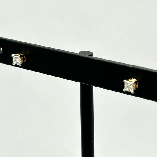 14k Yellow Gold Princess Cut Natural Diamond Stud Earrings