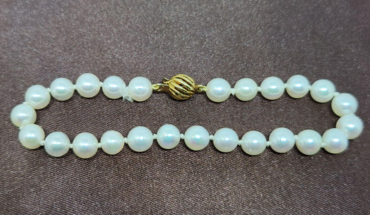 14k Yellow Gold Saltwater Akoya Pearl Bracelet 7.25'', 6.25mm, 25 Pearls