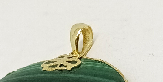 14k Yellow Gold Malachite Good Fortune Butterfly Disc/Donut Pendant