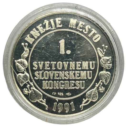 1991 Slovenia Coppia Medaglie SREBRNIK - 1. Svetovnemu 925 Sterling Silver Coin