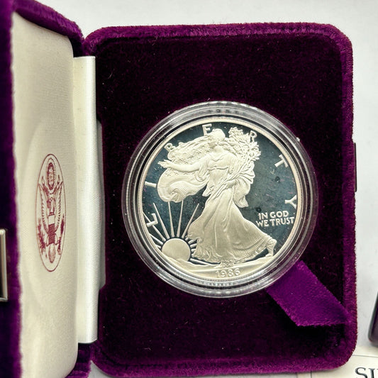 1986-S American Silver Eagle Proof in Original Government Packaging With COA
