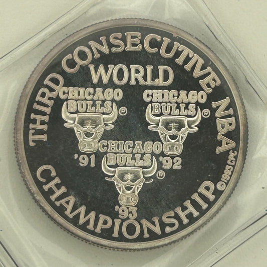 1993 Larry O’ Brien Silver Coin Chicago Bulls Three-Peat 1 Oz .999 Silver #6233