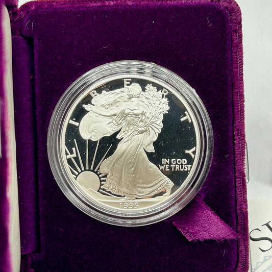 1995-P American Silver Eagle Proof in Original Government Packaging With COA