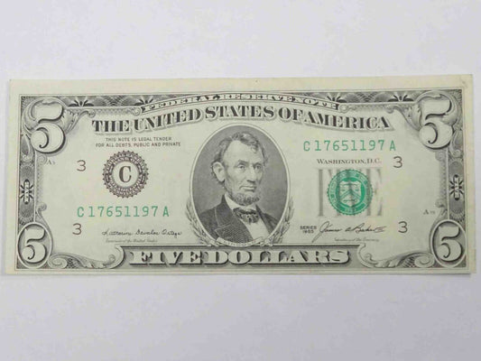 1985 $5 Federal Reserve Note Front to Back Ink Transfer Error