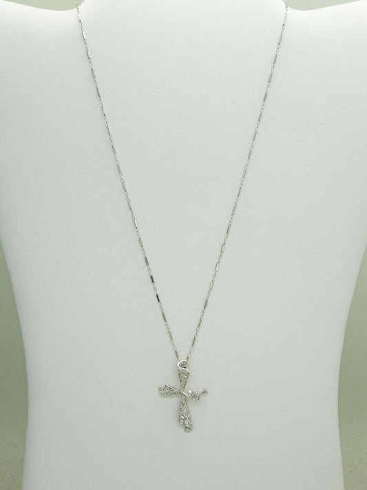 1ct Natural Diamond Pave Cross Pendant Chain Necklace 18" 14k White Gold