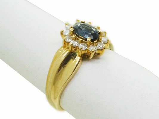 0.30ct tw Natural Oval Sapphire & Diamond Halo Starburst Ring 14k Gold Size 5.5
