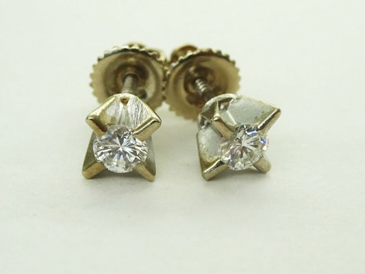 0.33ct tw Round Diamond Screw Back Cross Prong Stud Earrings 14k White Gold